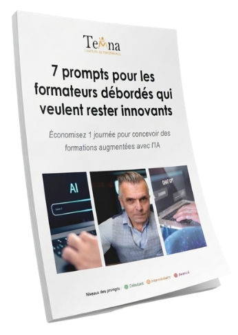 7 prompts stratégiques pour intégrer l'IA dans vos formations. Classés par niveau, prêts à l'emploi.